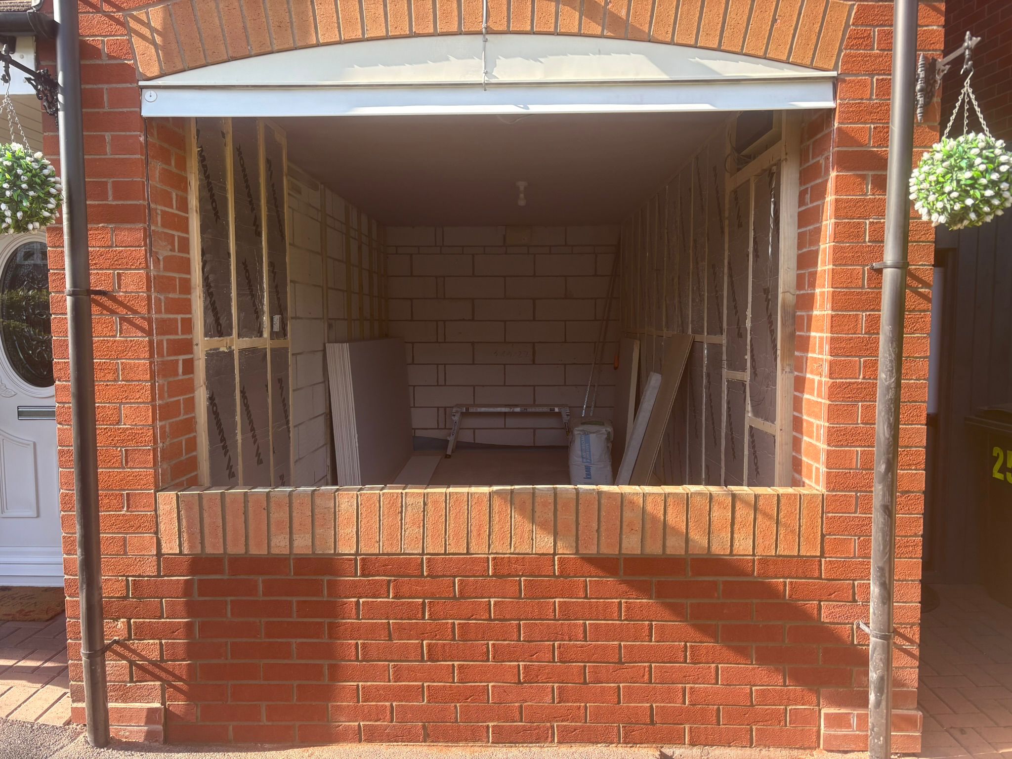 To maintain the property’s external appearance, we matched the new brickwork to the existing house façade. This included blending in the new wall section where the garage door was removed, ensuring the conversion looked completely integrated from the outside.